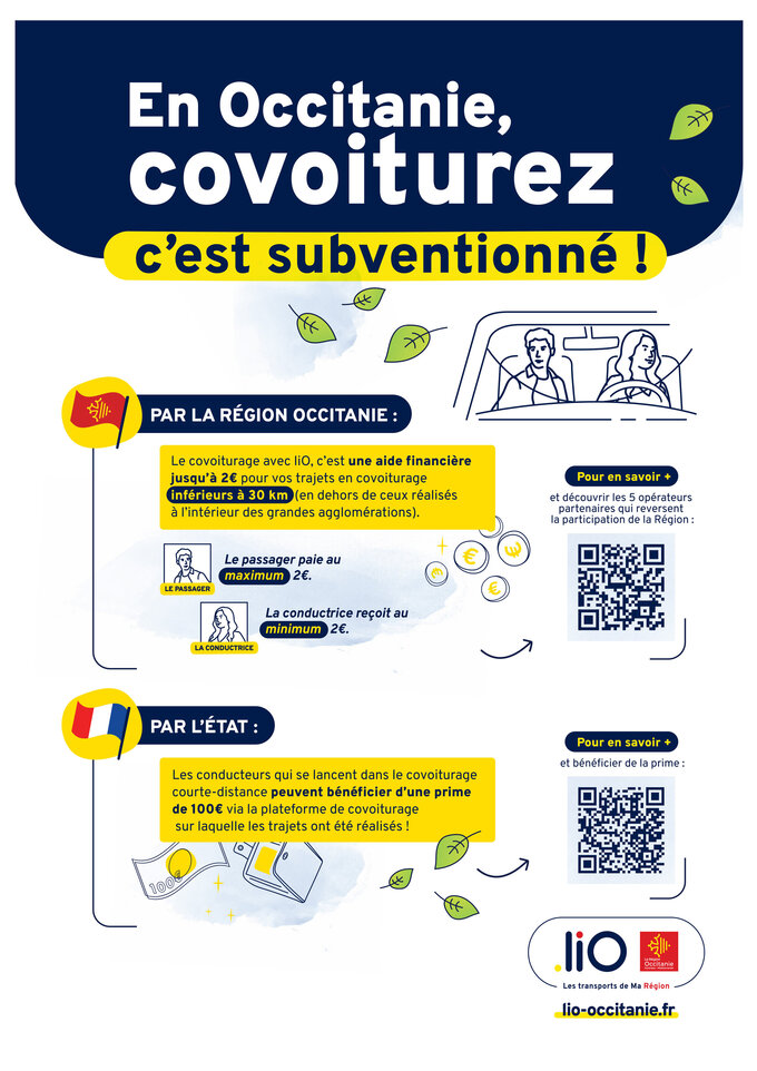 Aide financière de la Région pour le covoiturage de courte distance (distance inférieure à 30 kilomètres)